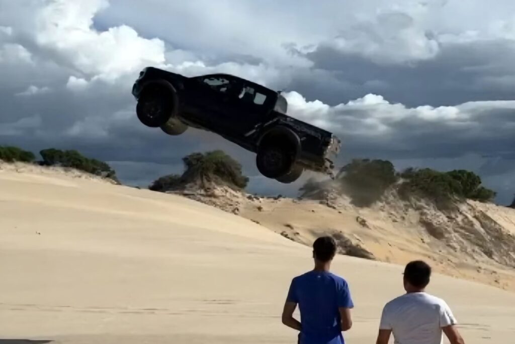 Um vídeo que viralizou nas redes sociais mostra o momento em que um homem acelera uma caminhonete em alta velocidade e usa uma duna como rampa em Canoa Quebrada, no Ceará. Devido à imprudência, o veículo sofreu danos graves e precisou ser rebocado da faixa de areia.