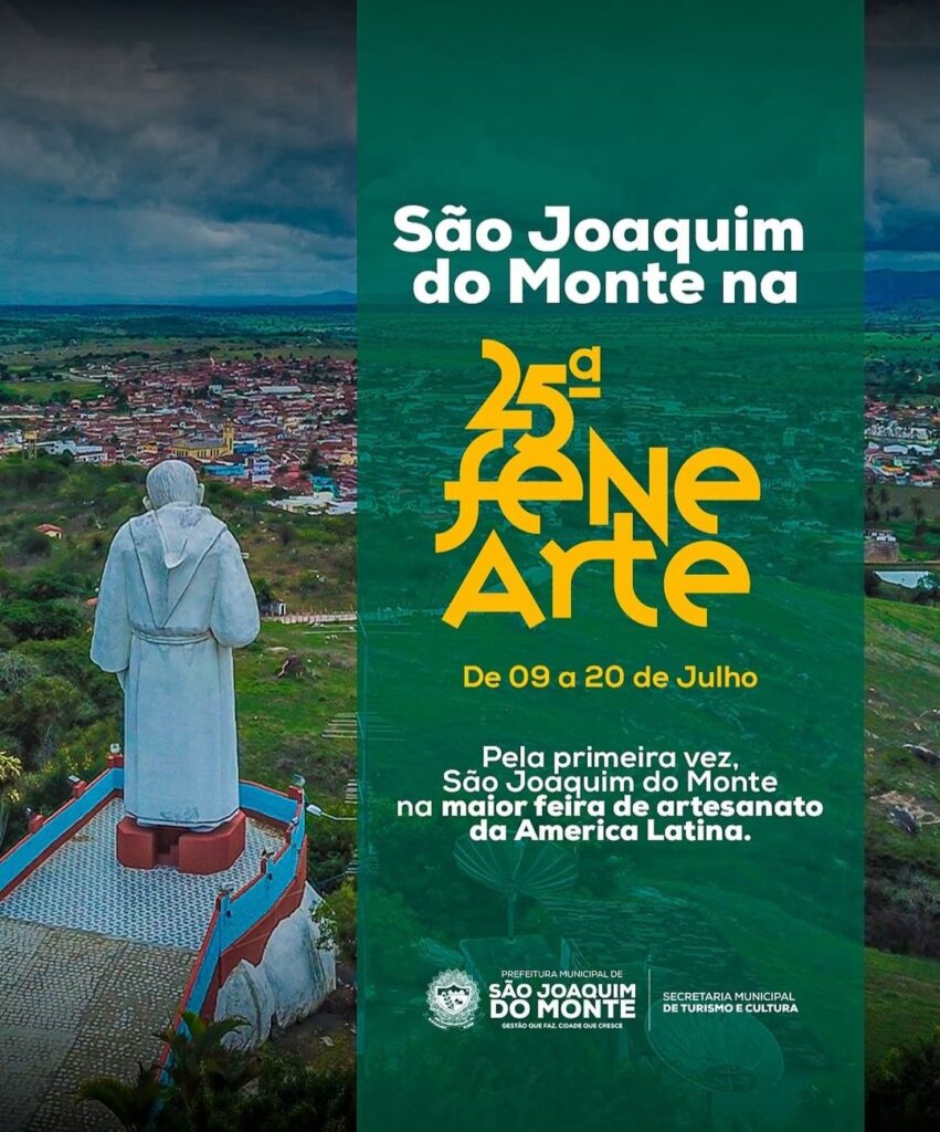 São Joaquim do Monte Fenearte 2025 está confirmada na 25ª edição da Fenearte. O evento acontecerá de 9 a 20 de julho de 2025, no Centro de Convenções de Pernambuco, em Olinda.